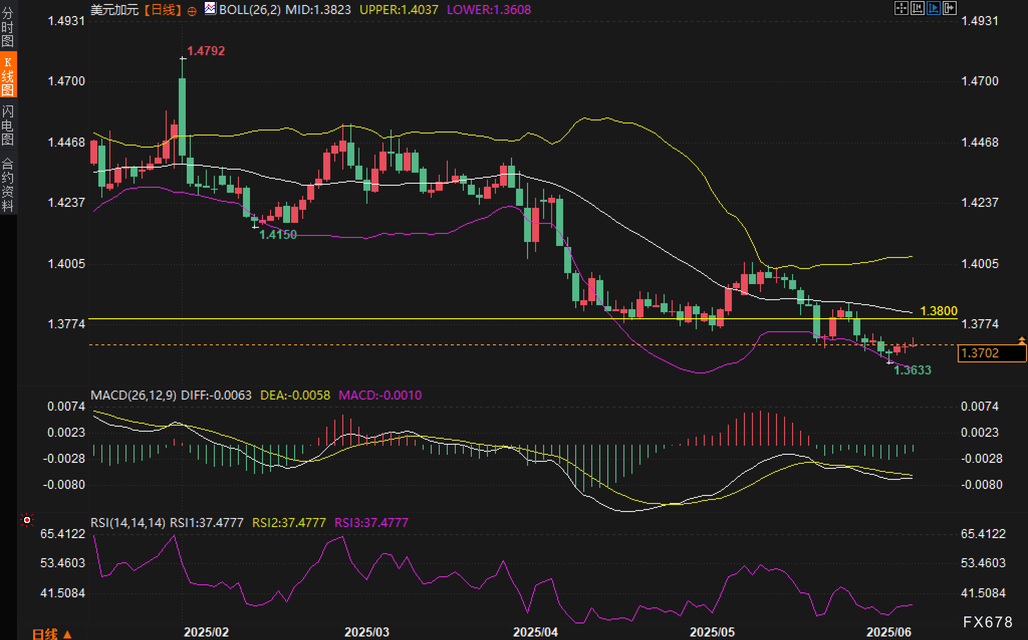 盈凯外汇官网报道——周二(6月10日),美元兑加元汇价延续震荡格局,当前交投于1.37附近。尽管基本面上美元受到美国非农数据提振以及重要经济体贸易谈判乐观预期支撑,但整体市场情绪仍显谨慎,加元则受到原油价格走强的支撑,汇价走势呈现多空交织的复杂格局。
