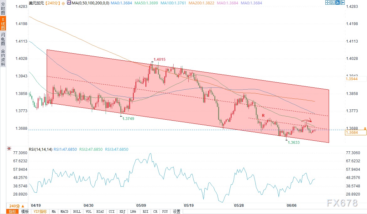 盈凯外汇官网报道——周三(6月11日)欧盘时段,美元/加元盘中报1.3684/85,小幅上涨0.11%。美元/加元目前整体短期受基本面(美国通胀数据、美加贸易协议进展)影响大,技术面空头趋势暂未改变,关注关键支撑及数据驱动的波动。