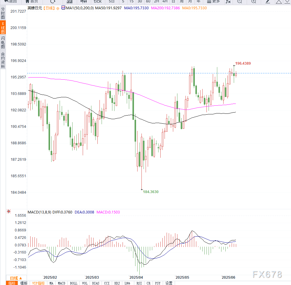 当前GBP/JPY正处于高位震荡蓄势阶段。全球贸易缓和削弱避险日元买需,而日本央行按兵不动预期进一步压制日元反弹动能。英镑则受益于英国经济韧性及持续的通胀压力短线偏强。整体关注196.45与195.00关键技术位的突破情况,短线突破有望带动新一轮上行行情。