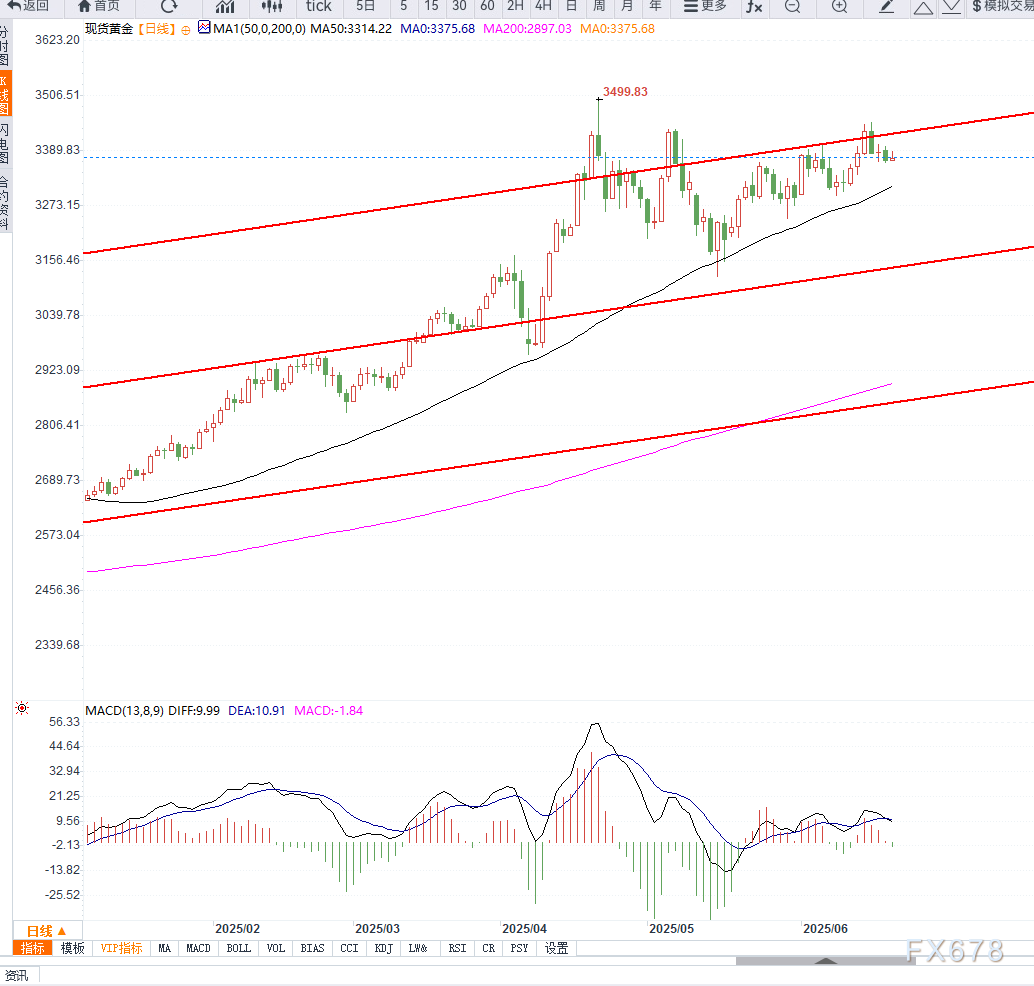 黄金(XAU/USD)日线图显示,价格近期已成功站上50日与100日均线,技术面呈现企稳回升格局。目前阻力位位于3400美元附近,若突破此位将确认上升趋势延续;下方支撑位则在3350美元一线,若失守将面临短期调整风险。
