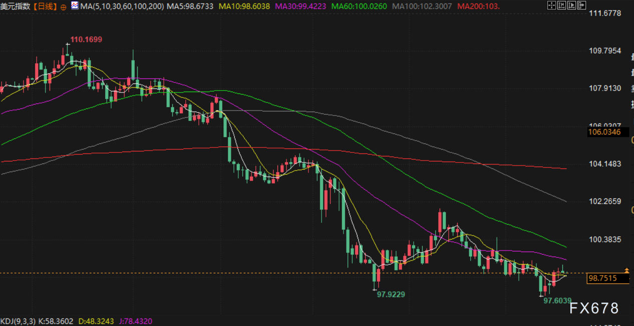 衡量美元兑其他六种货币汇率的美元指数持平于 98.9,本周势将上涨约 0.8%,这是自 2 月下旬以来表现最强劲的一周。