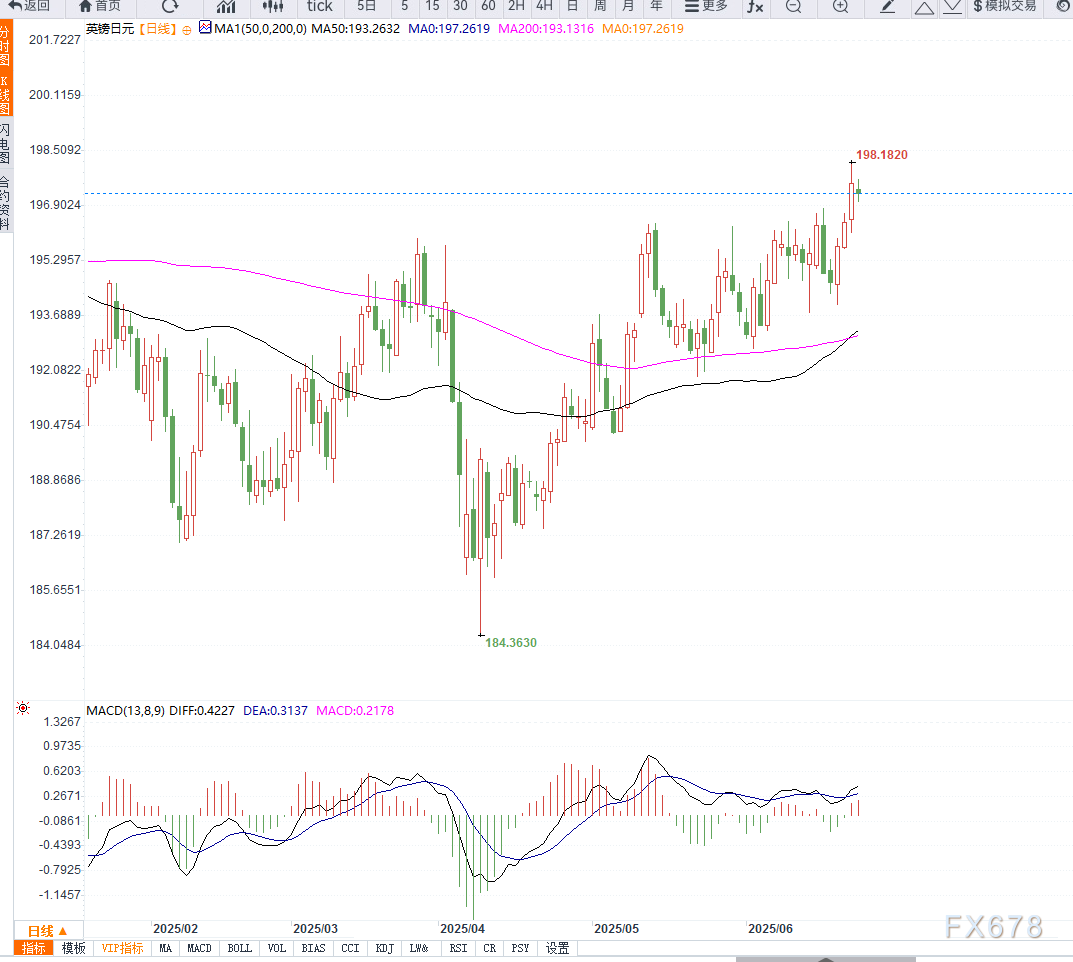 只要汇价维持在196上方震荡整理,技术上多头格局依旧稳固。后续市场焦点将转向美联储政策路径、日本央行动向及英国通胀数据的联动表现。