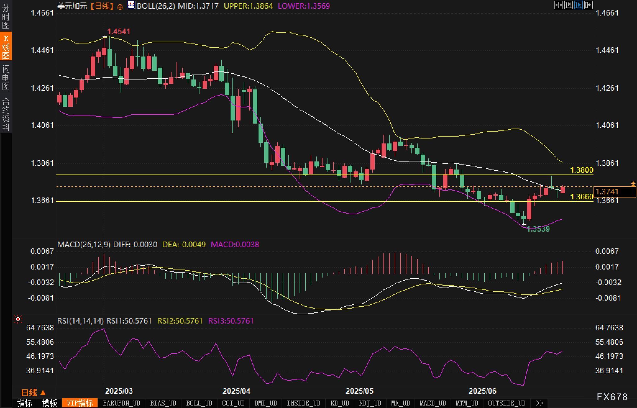盈凯外汇官网报道——周三(6月25日),美元/加元汇价震荡上行,北美时段交投于1.374附近,逼近关键阻力带,市场正等待新的方向信号。