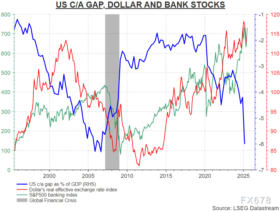 美国经常账赤字的激增无疑为全球经济敲响了警钟。尽管当前的赤字水平可能受到短期贸易扭曲的影响,但其背后反映的深层次问题不容忽视。从历史经验来看,经常账赤字的持续扩大往往伴随着经济泡沫的形成,而资本账户盈余的累积则可能为市场崩盘埋下伏笔。