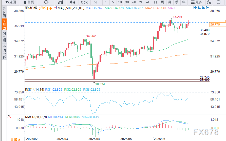 然而,若未能守住该水平,可能迅速回落至35.40-34.87美元区间,50日移动均线在34.40美元处下方等待。在宏观环境持续利好贵金属的背景下,这种清晰的技术结构为交易员提供了明确的短期持仓框架。