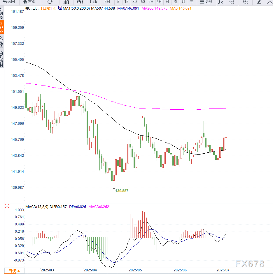 在全球风险偏好下降的背景下,日元作为传统避险货币再度受到关注。美国总统宣布将对日本商品征收25%关税,引发市场对亚洲国家出口的担忧。日本首相石破茂表示,美国已提出在8月1日前继续进行磋商,但谈判仍存较大分歧。