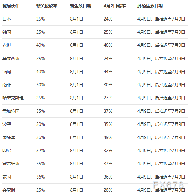 盈凯外汇官网报道——周一(7月7日),美国总统唐纳德·特朗普再次将全球贸易推向风口浪尖。他兑现竞选承诺,向多个贸易伙伴国发出关税信函,点燃了新一轮贸易紧张局势的导火索。从日本、韩国到马来西亚、印尼,再到老挝、南非等14个国家,这些信函不仅传递了特朗普的强硬态度,更为全球经济蒙上了一层不确定性的阴霾。与此前暂停的关税政策相比,这一次的信函有何不同?特朗普的关税策略又将如何影响全球市场?让我们一探究竟。