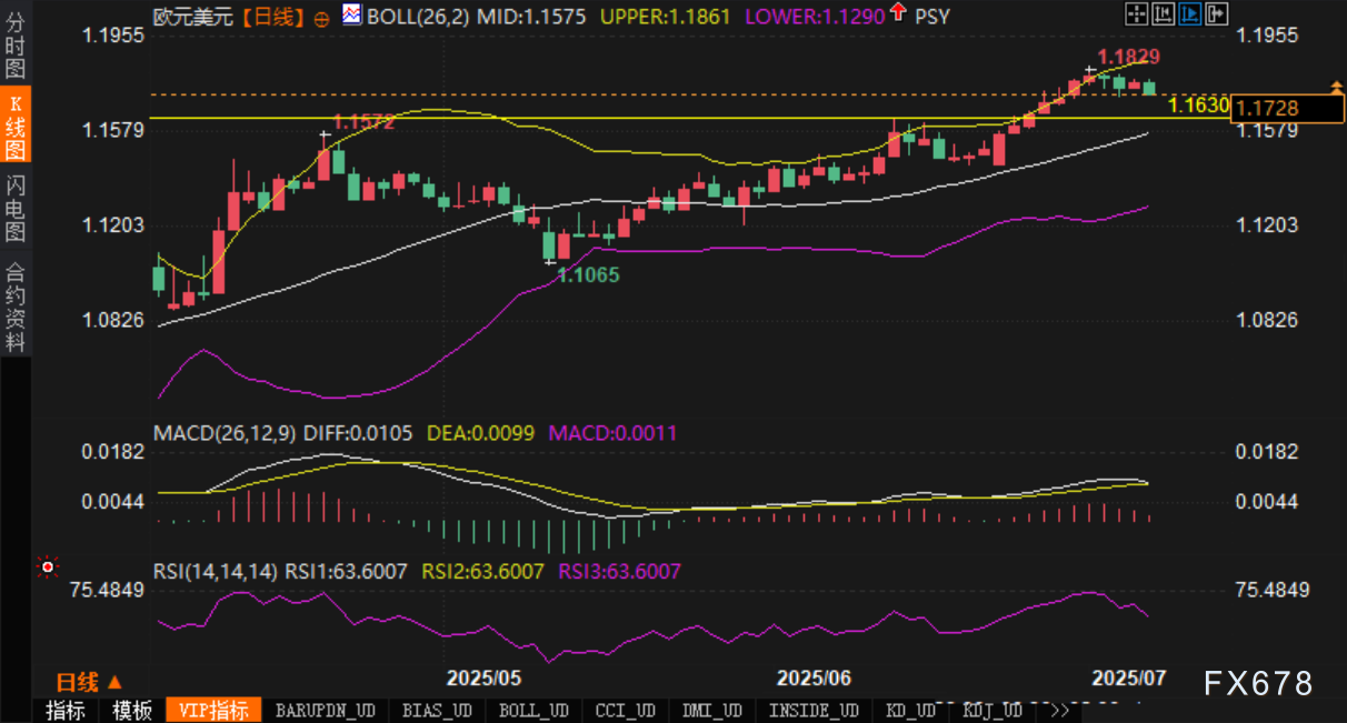 尽管德国工业产出意外增长1.2%,欧元区零售销售年率亦高于预期达1.8%,但均未能扭转欧元弱势,显示市场目前对经济数据的敏感度已被宏观政策预期所取代。与此同时,美联储降息预期显著降温,美国6月非农数据强劲,失业率降至4.1%,强化市场对美联储维持现行利率水平的判断,进一步推升美元指数回升动能。