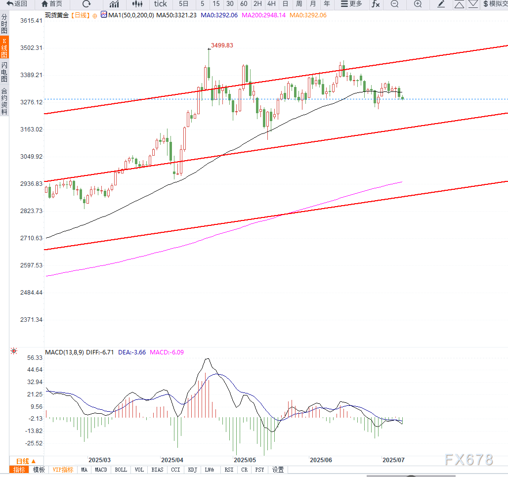 “金价技术形态已转空,短期若无法重返3300美元上方,将继续向下测试6月低位。” ——技术分析师