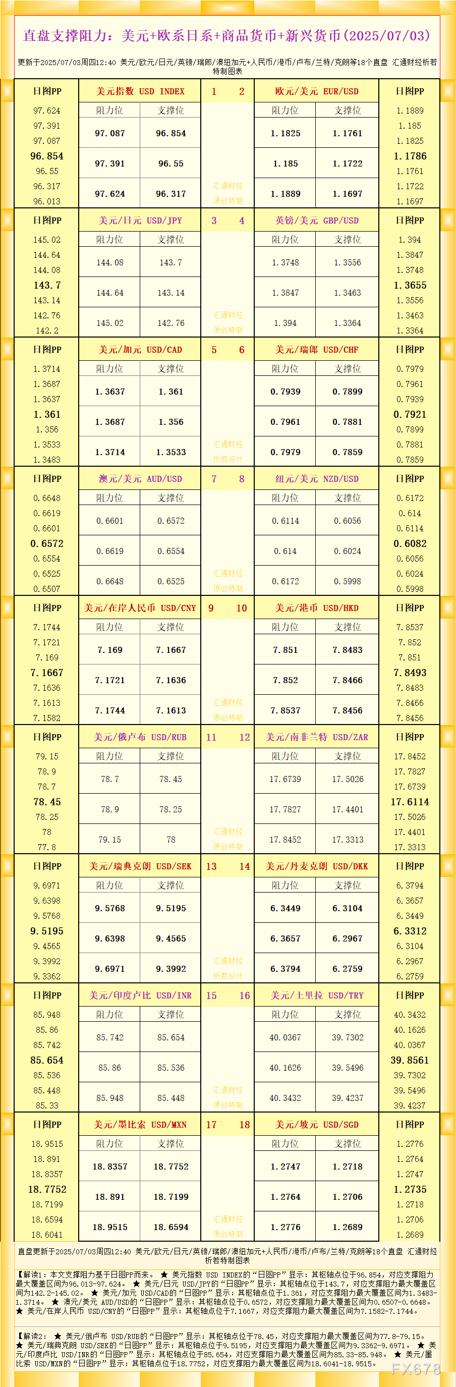 盈凯官网开户:一张图看18个直盘外汇支撑阻力:美元+欧系日系+商品货币+新兴货币