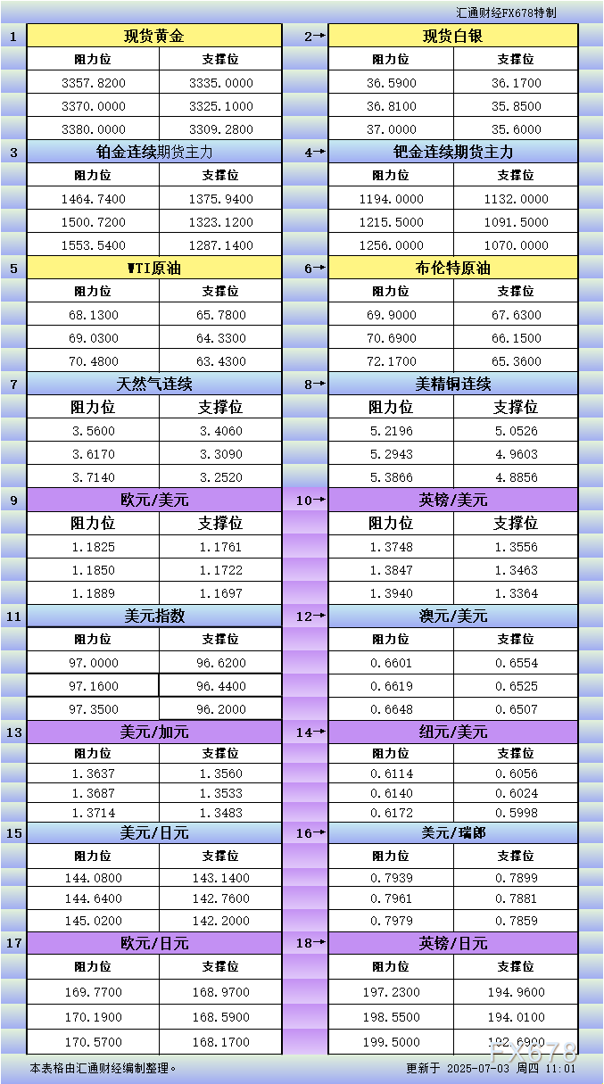盈凯登陆入口:一张图看商品支撑阻力:金银油气+铂钯铜农产品期货(2025年7月3