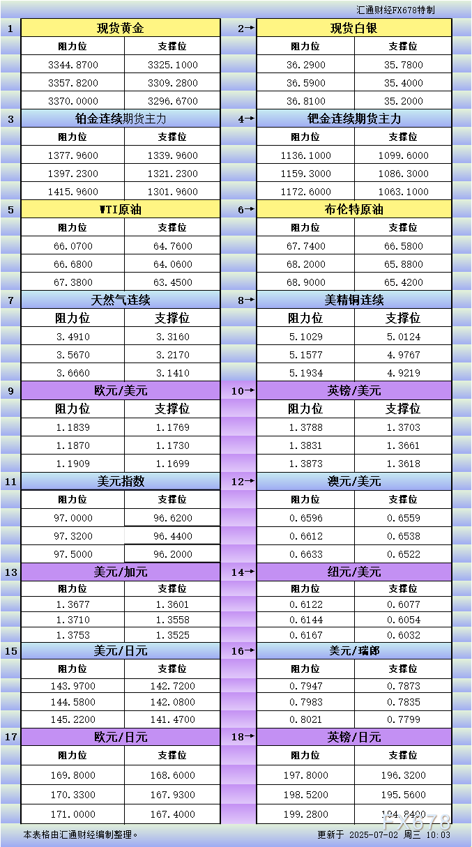 盈凯外汇官网:7月2日亚市更新支撑阻力:18品种支撑阻力(金银铂钯原油天然气铜及