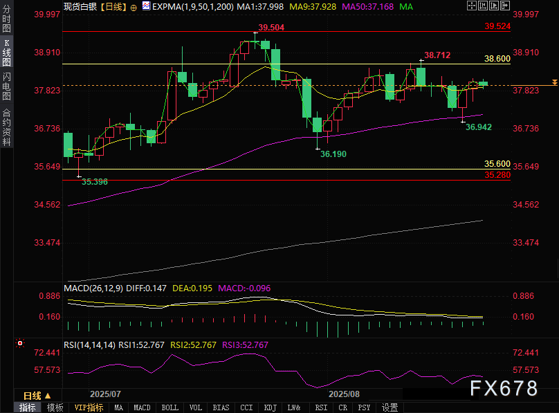 盈凯官网开户:白银技术分析:或将测试37.17美元支撑位