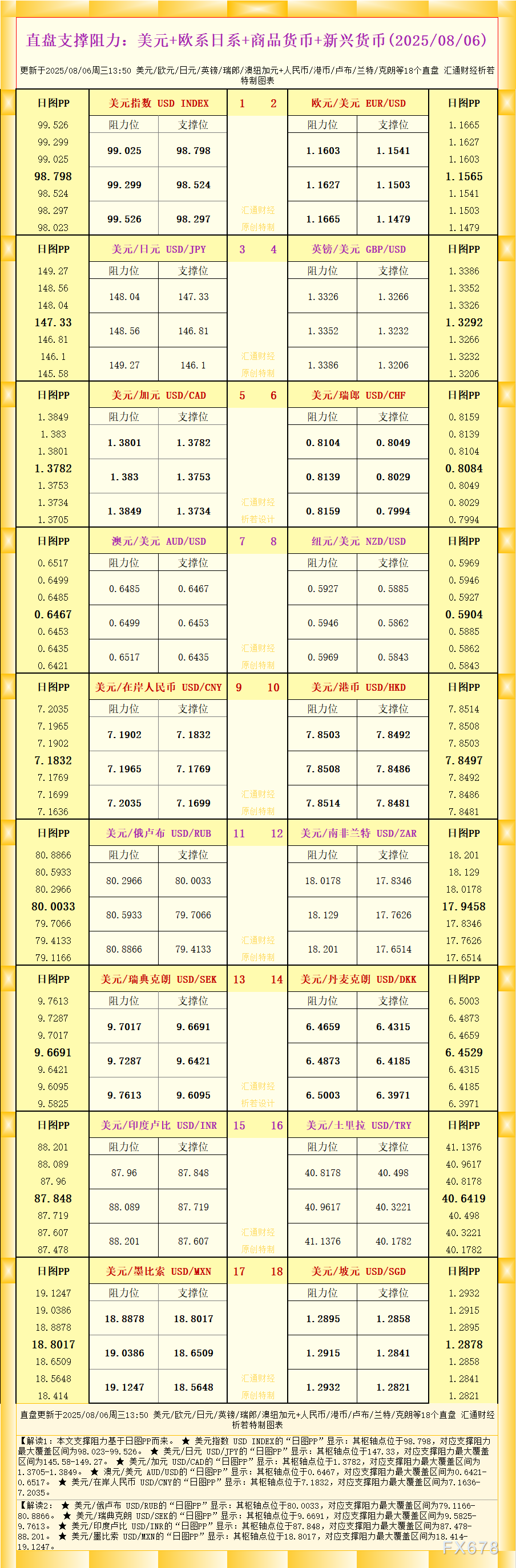 盈凯平台官网:一张图:2025年8月6日黄金原油外汇股指“枢纽点+多空持仓信号”