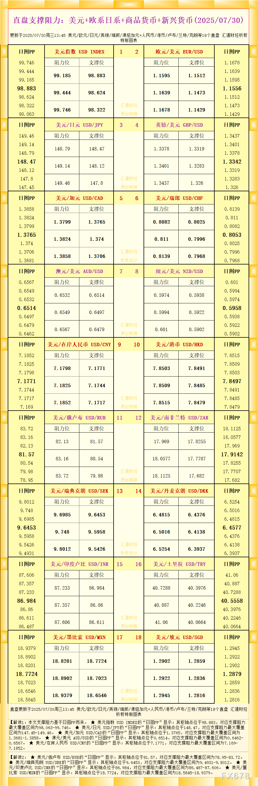 盈凯登陆入口:一张图看18个直盘外汇支撑阻力:美元+欧系日系+商品货币+新兴货币