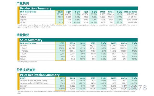 盈凯官网开户:淡水河谷2025年第二季度产销量报告